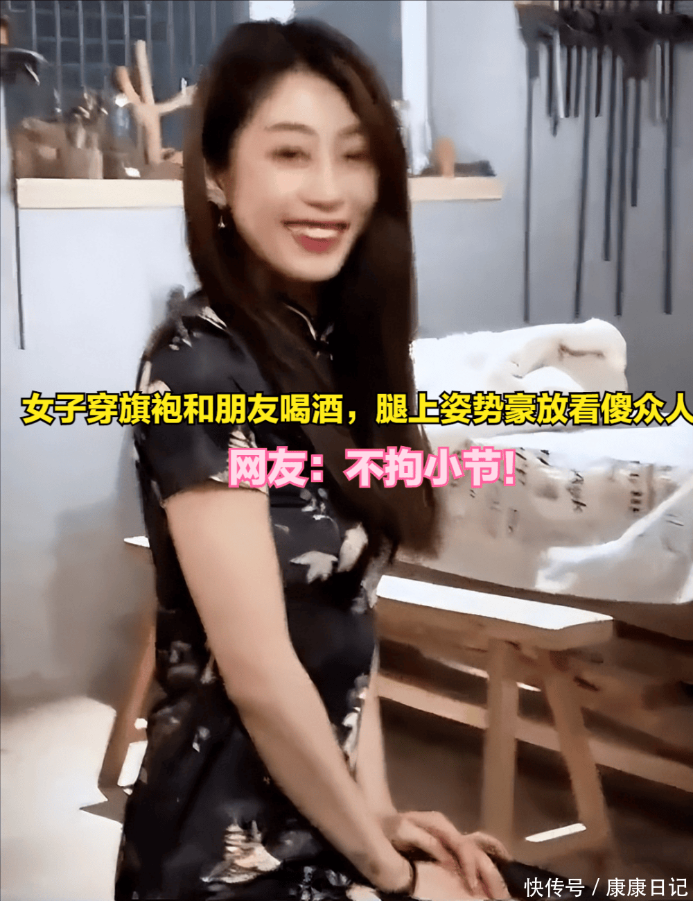 随着画面不断切换,好在同行的一位朋友提醒她裙子快要走光时,女子此时的反应顿时变得羞涩起来,赶紧整理起桌边的旗袍,努力展现出一副端庄优雅的形象,看到这一幕,众多网友纷纷调侃:“看来美女也有大意的时候。”
